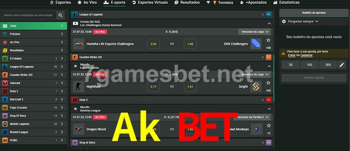 O Ak Bet oferece uma grande seleção de opções de apostas em e-sports com probabilidades competitivas